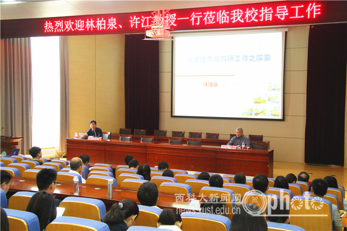 5月8日下午,中国矿业大学林柏泉教授和重庆大学许江教授应安全学院邀请做客我校“胡杨林大讲堂”,两位教授在雁塔校区主楼报告厅分别作了题为《人才培养与科研工作之探索》和《基于综合作用假说的多功能煤矿瓦斯动力致灾物理模拟试验系统》的学术报告,报告会由学院常务副院长邓军教授主持,学校部分教师及研究生百余人聆听了报告。